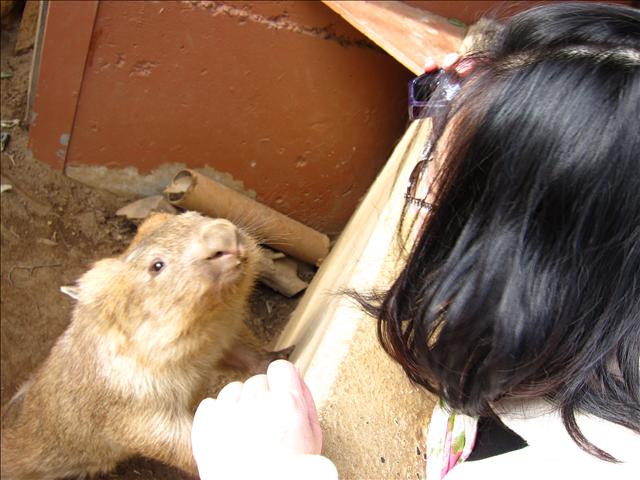 我運氣很好拍到小袋鼠,一拍完牠就躲進去媽媽的袋子裡了。