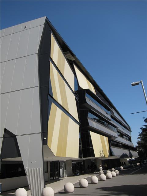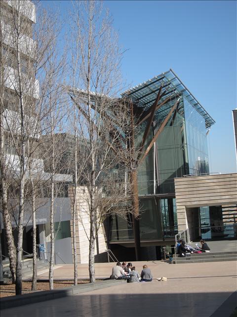 這棟建築落在校園中心,科學大樓,全部都是玻璃很是漂亮