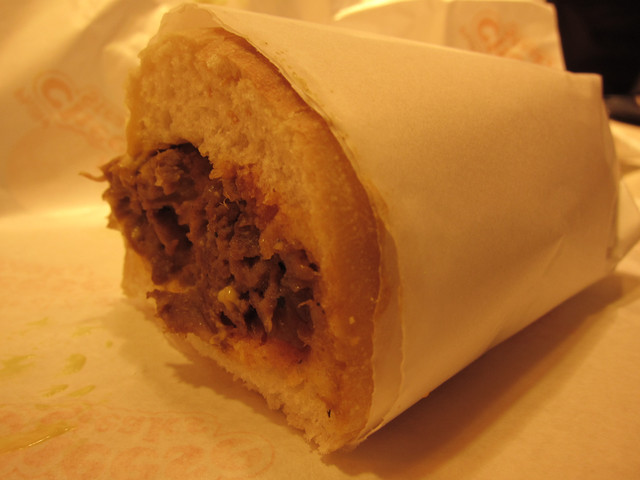起司鐵板牛肉堡很貼心的對切,還包了紙,吃的時候不會弄髒手